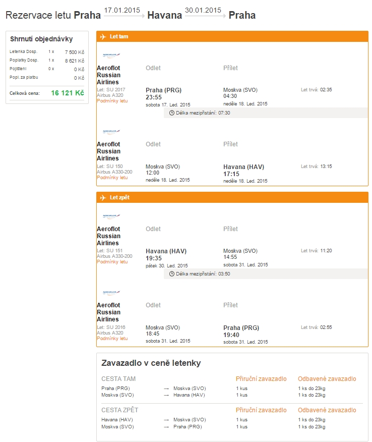 I proto, že na rozdíl od jiných karibských ostrovů, je akcí leteckých společností na Kubu velmi málo, přidávám s radostí další zajímavý tarif společnosti Aeroflot platný pro odlety z Prahy (PRG). Zpáteční letenky na Ostrov svobody, konkrétně do hlavního města Havany (HAV) je tak možné zakoupit již za 16.121 Kč. Cena zahrnuje odbavené (23kg) a kabinové zavazadlo.
