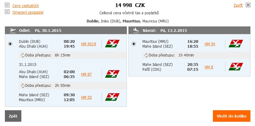Pro flexibilní cestovatele, kteří si rádi po cestě prohlédnou i některé z evropských měst, je zde akční tarif aerolinek Air Seychelles. Letenky na exotický Mauritius (MRU) jsou tak nyní v nabídce za cenu začínající na pěkných 14 tis. Kč v případě odletu z Dublinu (DUB) a návratu do Paříže (CDG).