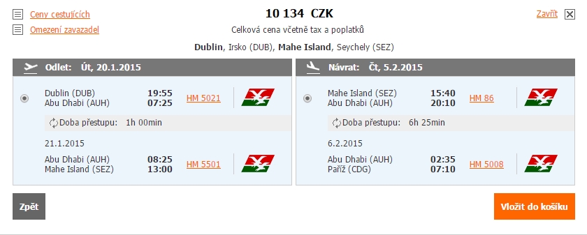 Pro flexibilní cestovatele, kteří si rádi po cestě prohlédnou i některé z evropských měst, je zde akční tarif aerolinek Air Seychelles. Letenky na exotické Seychely (SEZ) jsou tak nyní v nabídce za cenu začínající na pěkných 10 tis. Kč v případě odletu z Dublinu (DUB) a návratu do Paříže (CDG).