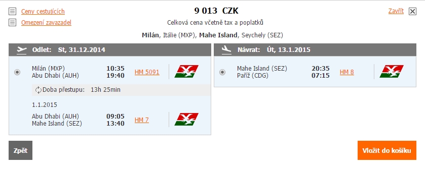 Pro flexibilní cestovatele, kteří si rádi po cestě prohlédnou i některé z evropských měst, zde je opět akční tarif aerolinek Air Seychelles. Letenky na exotické Seychely (SEZ) jsou tak nyní v nabídce za cenu začínající na rekordně nízkých 9 tis. Kč i na pěkný termín 31.12. – 13.1., tentokrát v případě odletu z velmi dobře dostupného Milána (MXP) a návratu do Paříže (CDG).