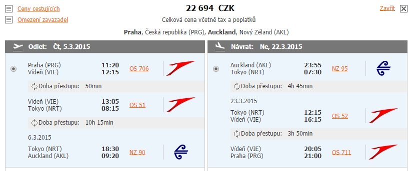 - Praha – Christchurch / Auckland – Praha 22.604 Kč