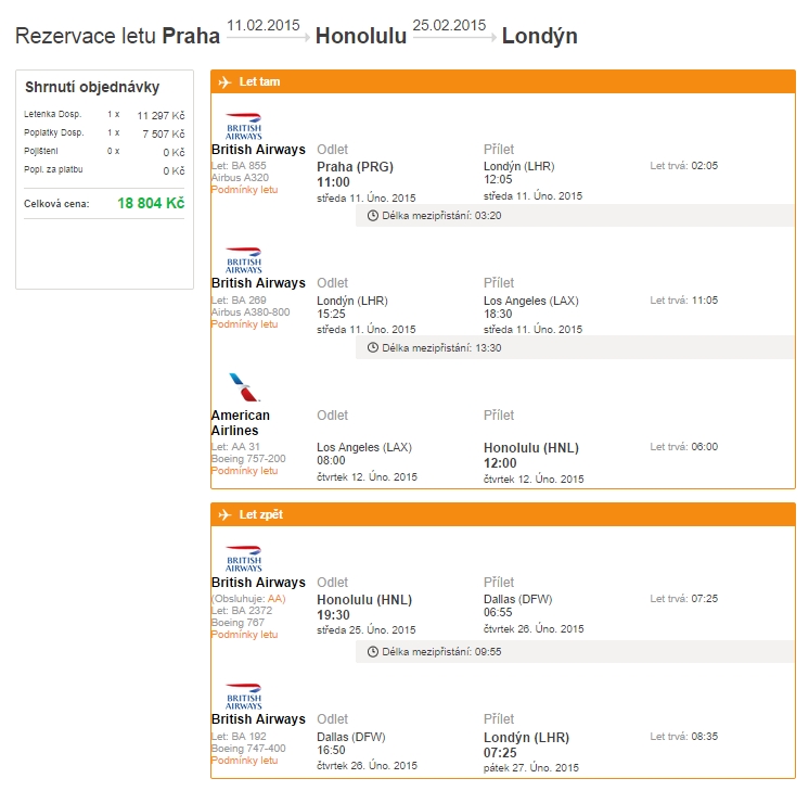 - Praha – Honolulu – Londýn