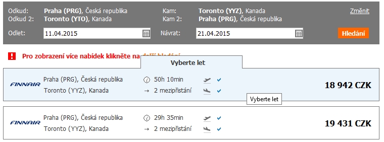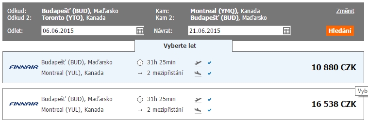 Rezervace: Letuška.cz -> Toronto | Montreal | Montreal/Toronto