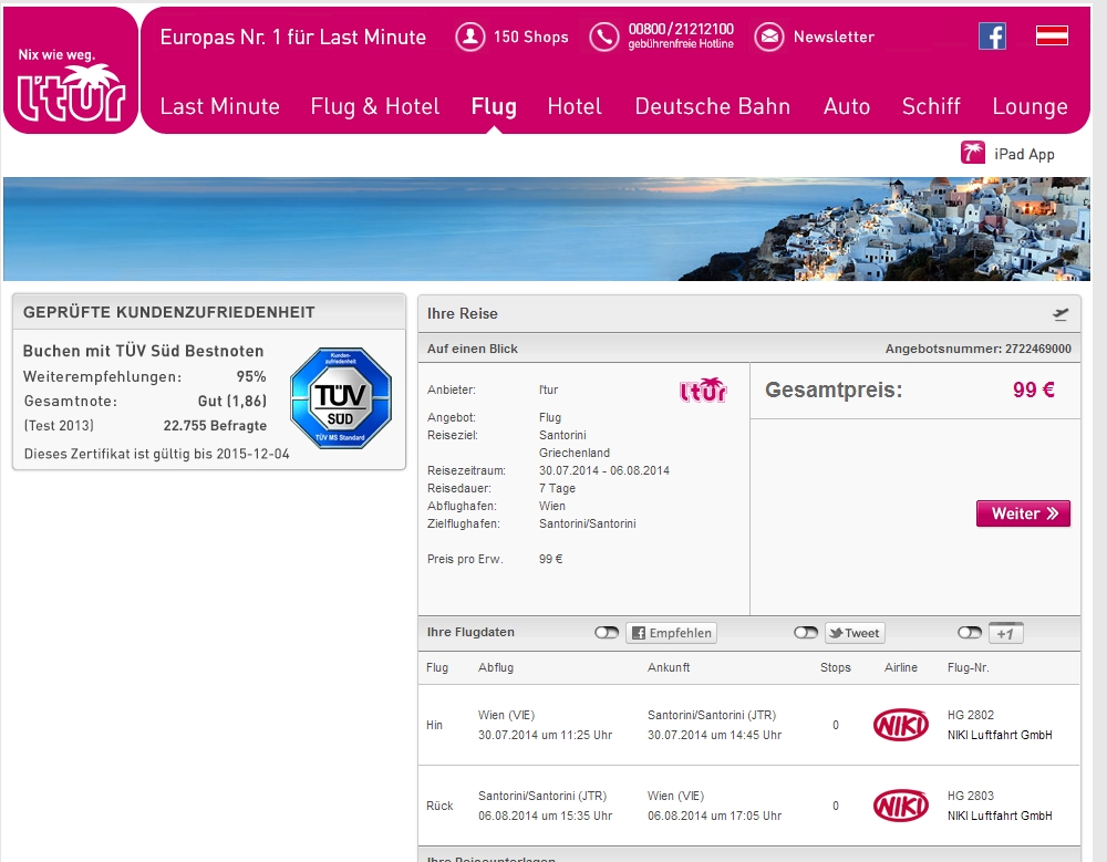 Odlet pozítří (30.7) z Vídně v 11:25 s návratem 6.8.2014