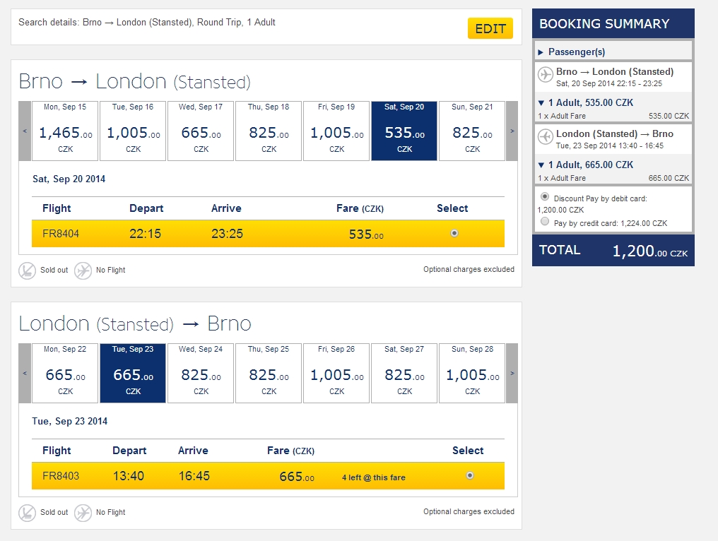 Britskou metropoli Londýn můžete nyní levně navštívit s Ryanairem. Zpáteční letenky z Brna (BRQ) na londýnské letiště Stansted (STN) najdete v rezervačním systému za ceny již od 1 070 Kč za zpáteční letenku vč. poplatku za platbu debetní kartou.