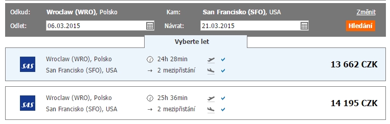 Zajímavou nabídku pro cesty na západní pobřeží USA, konkrétně do kalifornského San Francisca, mají skandinávské aerolinky SAS. Letenky s odletem z polské Wroclavi (WRO) do San Francisca (SFO) jsou nyní za cenu od 13.662 Kč. Cena zahrnuje odbavené zavazadlo o váze 23 kg a klasické zavazadlo kabinové.