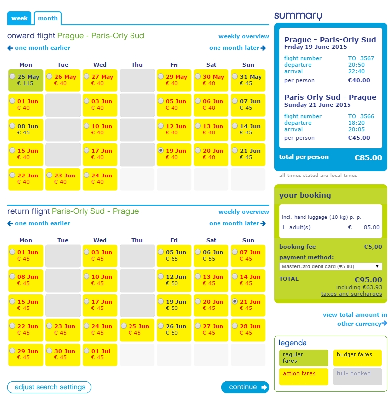 Příklad rezervace: víkendové datum 19.6 – 21.6.2015, ve kterém se mimochodem koná Paris Air Show na letišti Le Bourget (každé dva roky, fotky z předchozího ročníku zde )