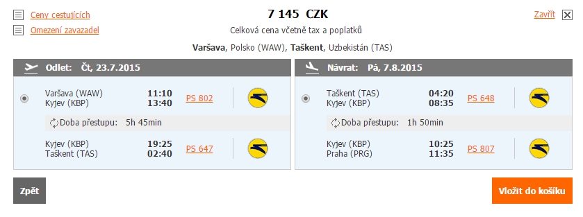 Pro nejen letní cestu do Uzbekistánu můžete využít cenově atraktivní tarif Ukraine International Airlines. Letenky z Varšavy (WAW) do Taškentu (TAS) s návratem do Prahy je nyní možné zakoupit za pěkných 7.145 Kč. Pro dopravu do Varšavy můžete využít například levný PolskiBus nebo vlaky ČD. Podrobné info o letišti Varšava najdete zde.